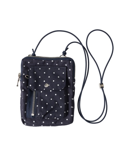 トレンドのドット柄が可愛らしいミニポーチは、スタイリングのポイントになるアイテムです。