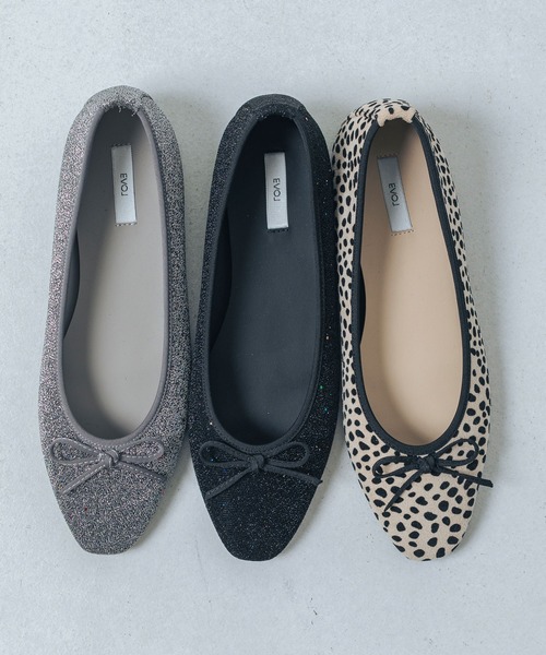 【EVOL 2025AW collection】驚くほど柔らかくソフトな履き心地のバレエシューズが登場。すっきりとしたつま先なので可愛らしくなりすぎず、合わせ方で大人っぽく上品にもお使いいただけます。キラキラのソフト素材はもちろん、内側にふかふかのクッション材料を使用しているので足当たりが柔らかく、ぷっくりとしたクッション中敷きのおかげで歩行時のストレスが軽減されます◎ぜひ試していただきたいこだわりの履き心地。