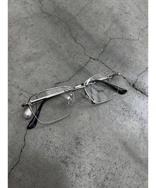 滴型のパールとチェーンを垂らしたトレンド感溢れる眼鏡。