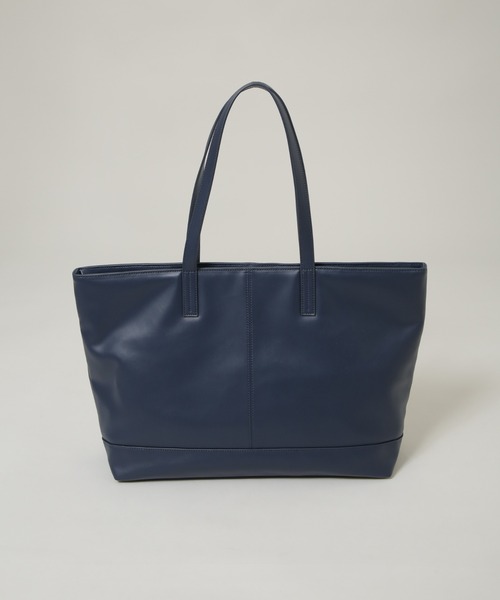高級感漂うシンセテックレザ―を使用したトートバッグ。ビジネスシーンにもマッチしたシンプルなデザインで、PCや書類、小物まで簡単に収納できるサイズ感が魅力。肩にもかけやすい持ち手の長さなので、通勤やお出掛けなどデイリーに活躍すること間違いなしのアイテムです。