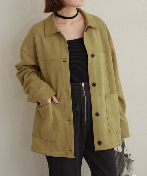 上質なフェイクスエードを使用した大人なカジュアルジャケット・トレンドのスエード素材で、羽織るだけで秋らしい雰囲気のジャケット。