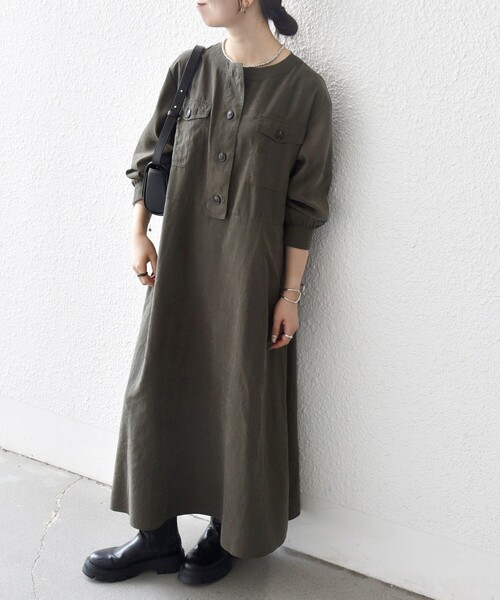 【25AW】〈デザインポイント〉ワークテイストの大きめなフラップポケットがポイントのワンピース。