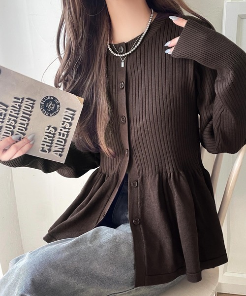シンプルながらも女性らしいデザインのペプラムカーディガン♪