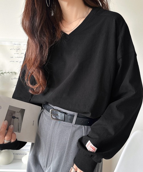 大人っぽさと抜け感を同時に叶えるVネックロンT。