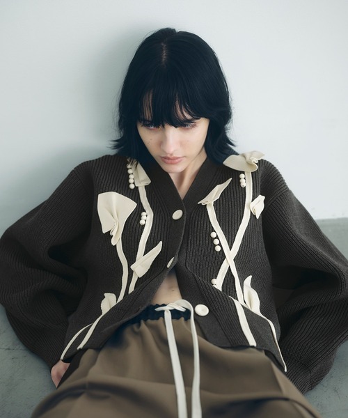 《ウォッシャブル》存在感のある刺繍とフォルム感が他にはない一着。カーディガンとしてもプルオーバーとしても華やかなニットカーディガン◆2025-26秋冬◆