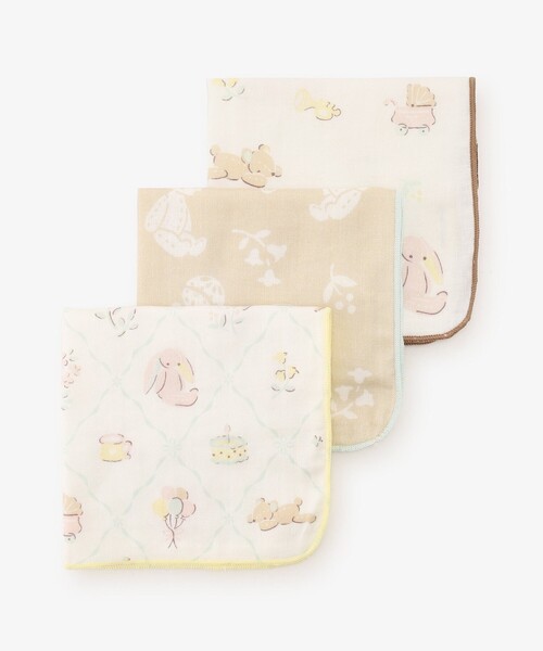 ほっこりとしたタッチのアニマルモチーフをあしらった、ガーゼの3枚セットです。