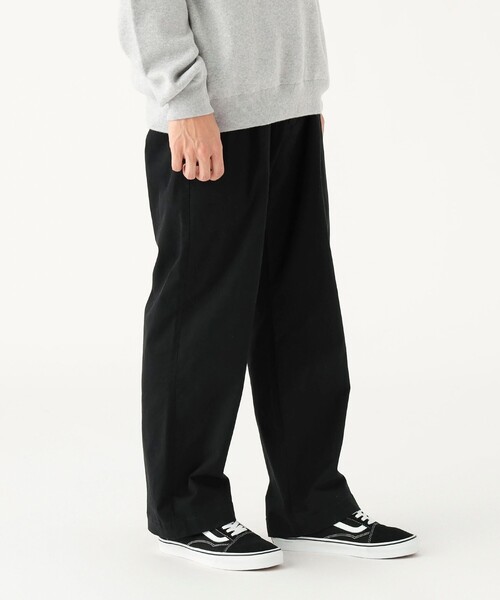 ・飾り気のないワイドシルエットが特徴のチノパンツ。
