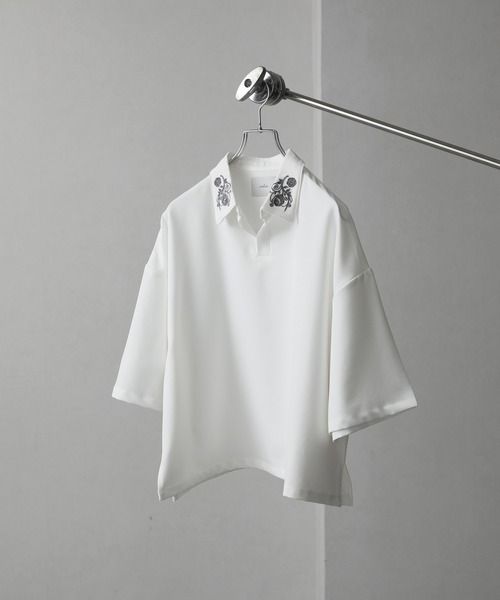 繊細な花柄刺繍を施したモード感溢れるスキッパーシャツが登場。