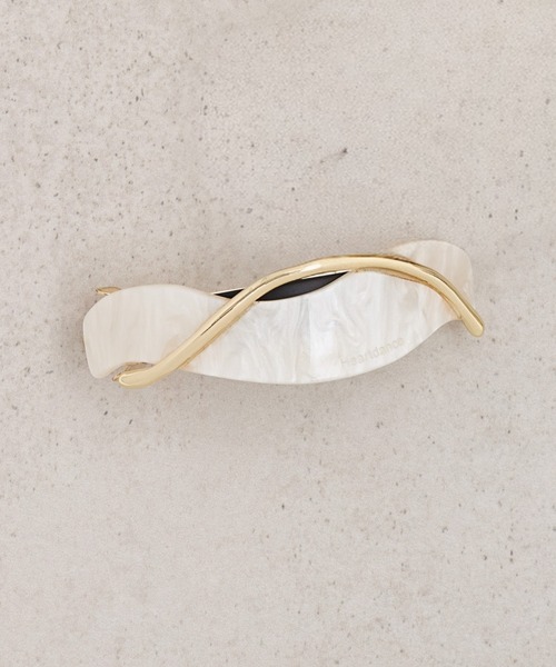 やわらかなニュアンスマーブルに、しなやかにカーブを描くメタルラインが重なった大人上品なバレッタ!