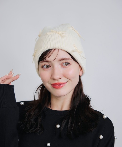 大人フェミニンなリボンニット帽