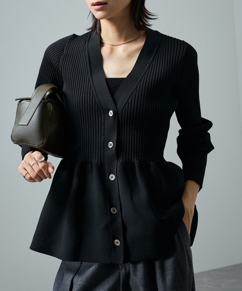 好評につき新色が登場!裾に向かって広がるペプラム/フレアーデザインで着映えするリブVネックカーディガン■デザイン/シルエット