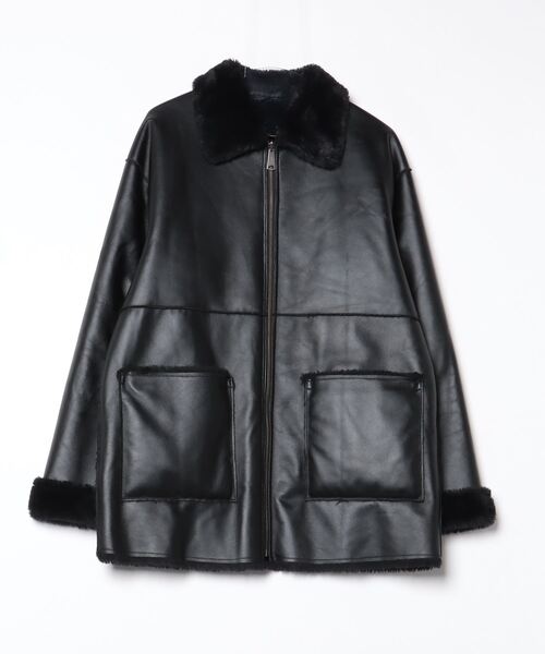 参考商品名:◆シンセティックレザー×フェイクファー リバーシブルブルゾン