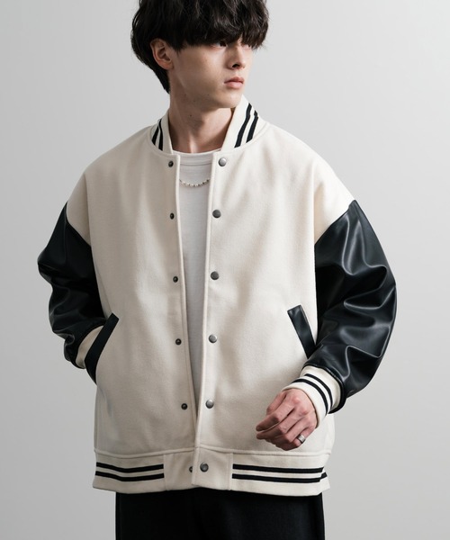 参考商品名:オーバーサイズテックメルトン/PUレザー切替スタジャン