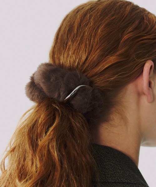 メタルモチーフがアクセントになった、フェイクファーのシュシュ。