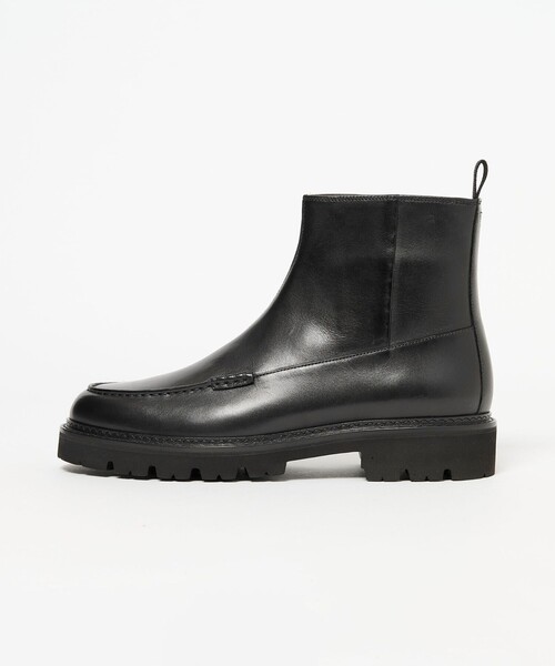 モカシンディテールがさりげなく効いた、ブーツタイプのレザーシューズ。
