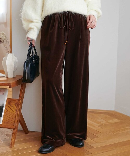 リラックス感のあるシルエットが魅力のベロアワイドパンツ●デザイン裾にかけて落ち感があり、ボリュームを抑えたワイドシルエットが大人の抜け感を演出。