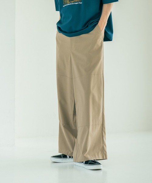 ももから裾までストンと落ちるワイドシルエットで存在感のあるパンツ。