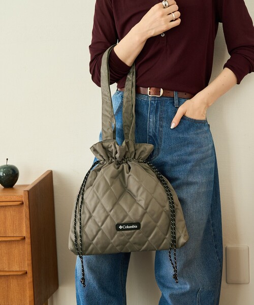 キルティング×コロンビアロゴが上品カジュアルな巾着バッグ