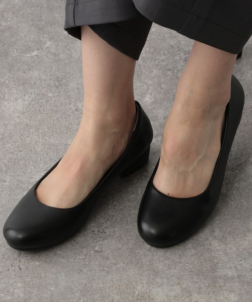 ラウンドトゥのベーシックなローヒールパンプス。安定感のある太めのヒールのため、冠婚葬祭やお仕事用にもおすすめ。ソールとヒールが一体成形になっているため、返りが良いのもポイント。