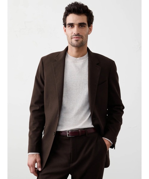 柔らかく起毛したフランネル素材を使用したテーラードフィットのスーツジャケット