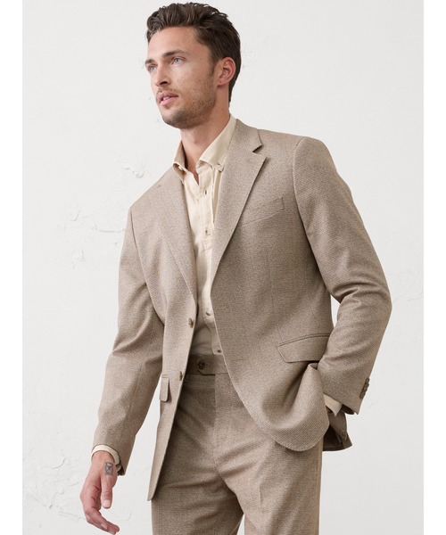 TAILORED FIT TAUPE HOUNDSTOOTH SUIT JACKET