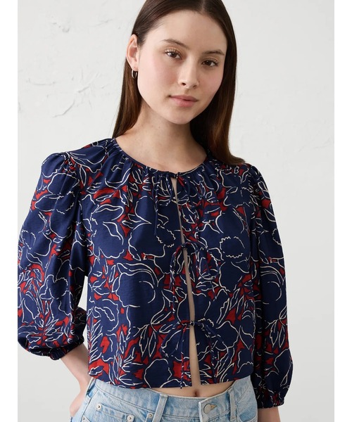 フロントのリボンディテールが目を引く、フェミニンなクロップドトップス