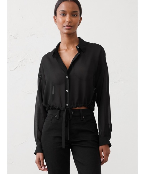 軽やかなシフォン素材で仕立てた、透け感のあるクロップドシャツ