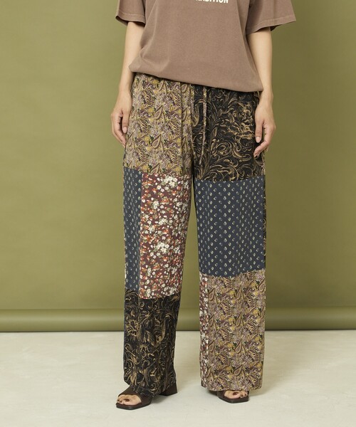 4つの柄が調和する、感性をくすぐるパッチワークパンツ