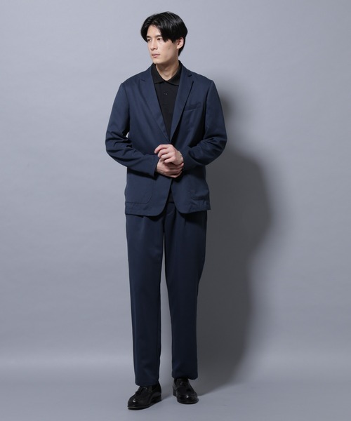 肌触りの良さと上品な見た目を兼ね備えた、ピーチツイル素材を使用したカジュアルスーツ。シワになりにくい形態安定性も備え、日常でも着用しやすい1着です。