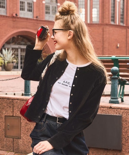 柔らかいベロア素材でカジュアルになりすぎず上品に着られます。