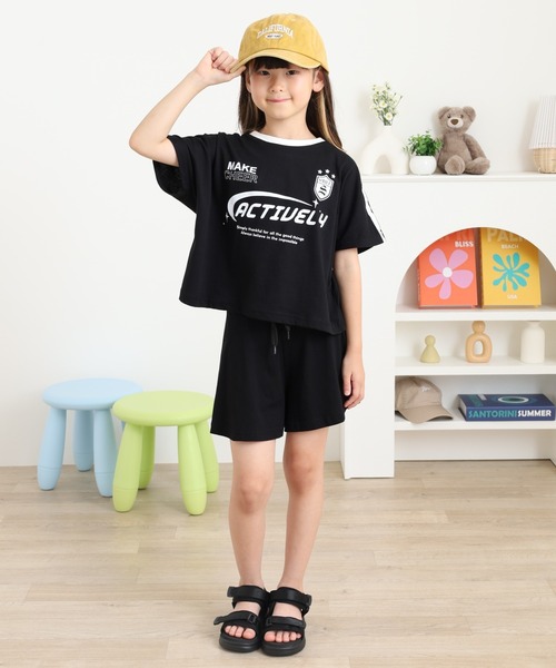 ゆったりとしたBIGシルエットのトップスと、軽やかに揺れるショートパンツのセット。