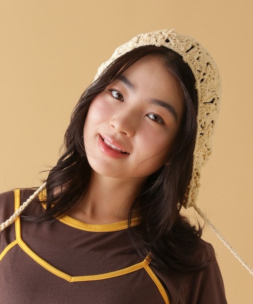 かぶるだけで可愛いトレンドアイテムシンプルな編地がレトロで可愛らしいボンネット。