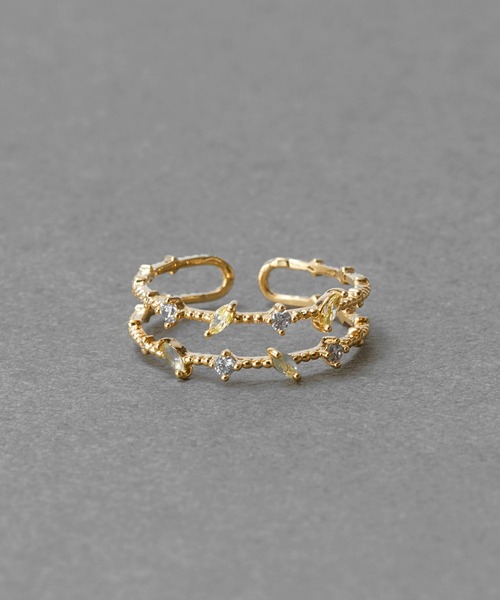 【指先に、さりげない華やぎを♪】繊細なラインにプチビジューをセッティングしたリング。