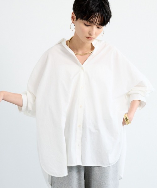 ラフに襟を抜いてた抜け感を意識した着こなしが