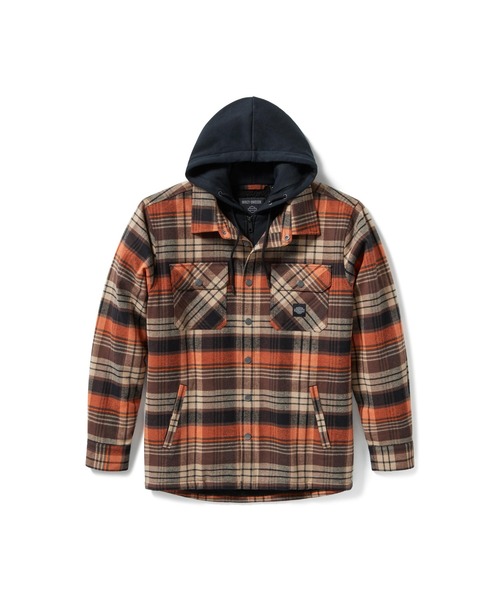 素材:100%コットンヘビーウェイト起毛ツイル、ヤードダイチェック柄。100%ポリエステルシェルパ裏地。100%ポリエステルタフタ、軽量ポリフィル入り(袖)。