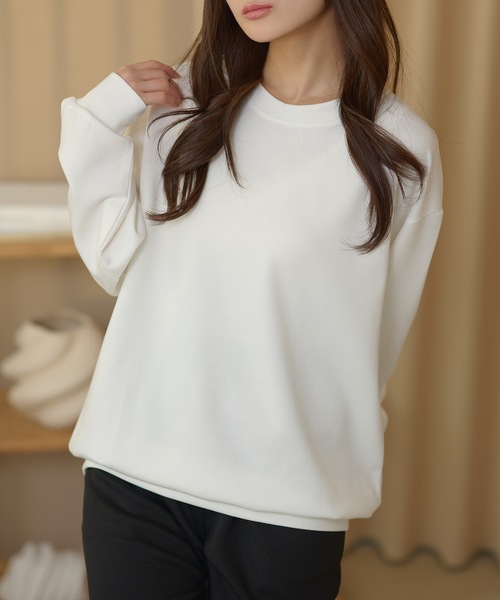 スッキリとしたシルエットが大人っぽいスウェットライクなプルオーバー。