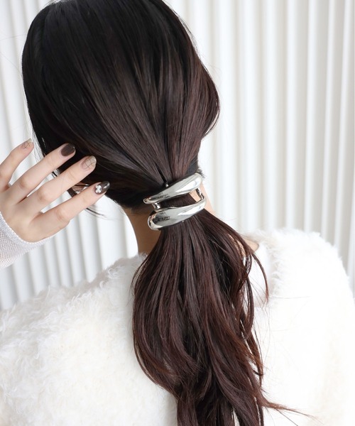 ヘアゴムで髪をまとめた後、ゴムにヘアカフのフックを引っ掛けるだけでお洒落なアレンジが完成します!