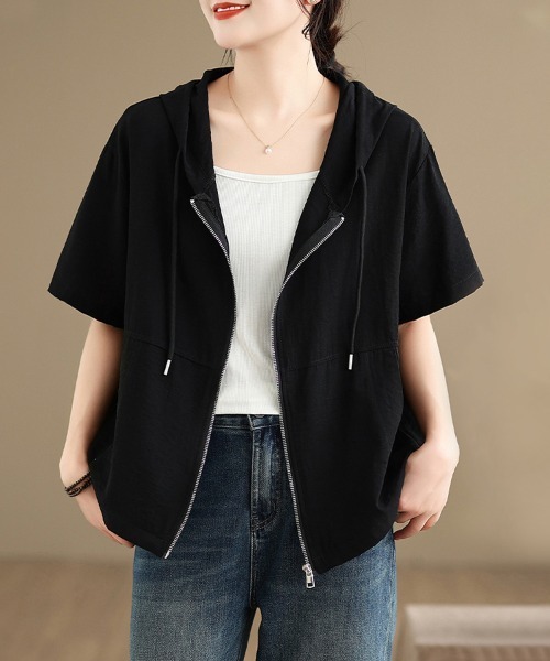 半袖ジップパーカー軽やかな着心地の半袖ジップパーカーは、春夏シーズンに大活躍の一枚。