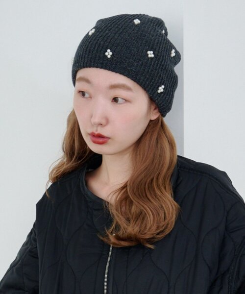 上品なパールがきらめく、大人可愛いニット帽■デザイン
