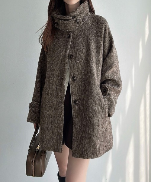 ふわっとしたシャギー素材が女性らしい雰囲気にしてくれるミドル丈コート。