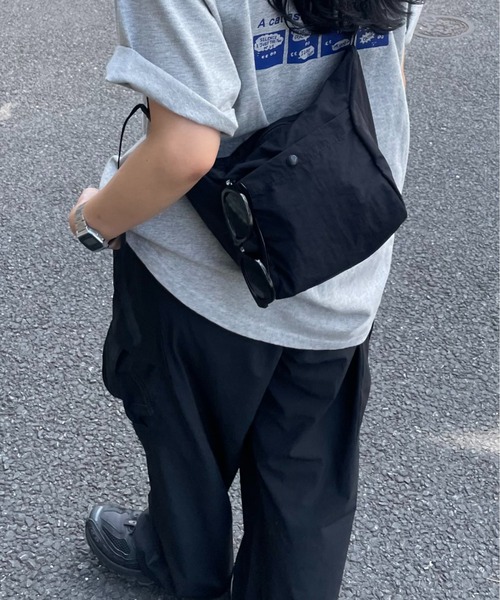 このショルダーバッグはその特性を活かしつつ、よりしなやかで柔らかな手触りを持つように加工されたソフトナイロンを使用しております。