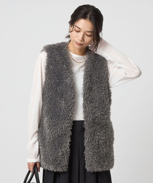 秋冬のレイヤードスタイルに欠かせないボア素材のベスト。