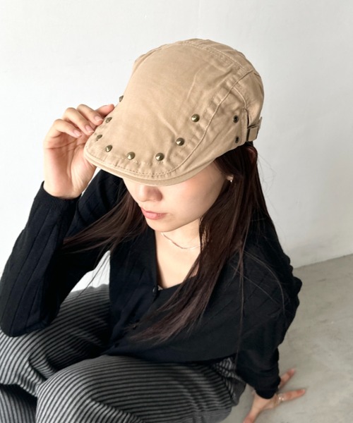 帽子 ベレー帽 スタッズデザインハンチング帽 レディース