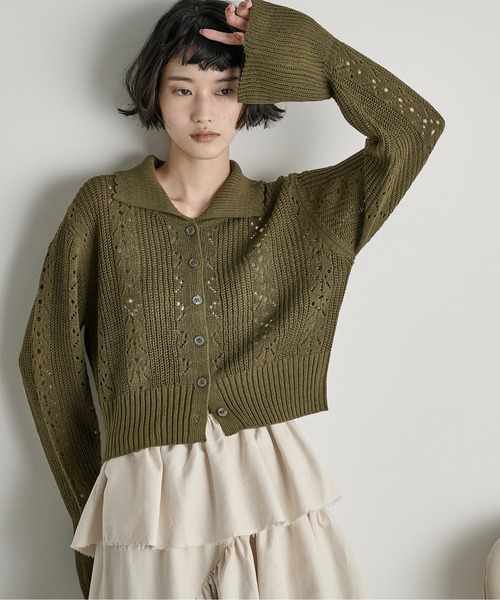 針抜きジャガードの編地で、抜けのあるルックに仕上げました。
