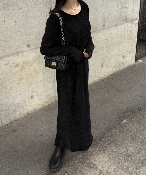 上品な印象のベロア素材のワンピース。