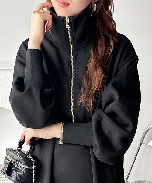 フロントのハーフジップデザインがアクセントのスウェットワンピース。