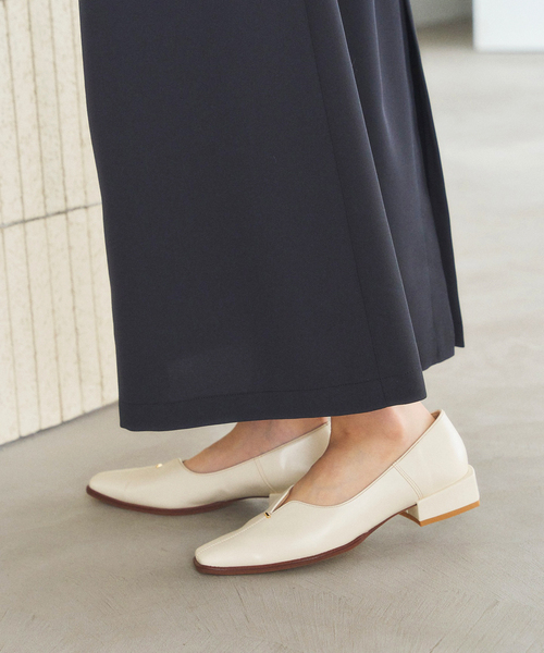 シームを効かせたステッチと甲にスリットを入れて、深めのカッティングで足押さえしつつ、履いた時のシルエットをすっきりみせてくれるデザインです。