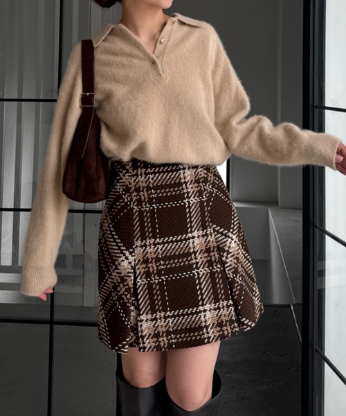 【今季らしい華やかな彩りが魅力的な大人気のロービングチェックミニスカート】