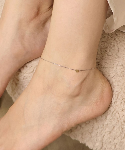 華奢なチェーンにカラーの異なるミニハートチャームが特徴的なアンクレット。