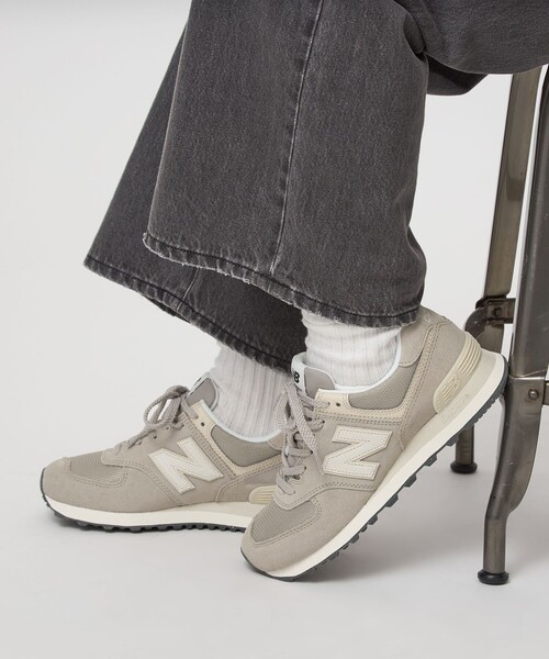季節にフィットする風合いのあるスエード/メッシュアッパーをホワイトNロゴが映えるオーセンティックなカラーで彩った「U574」。